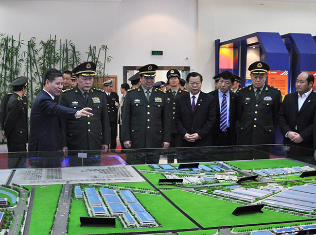 时任中央军委委员、国务委员兼国防部长梁光烈上将2011年4月16日视察星...