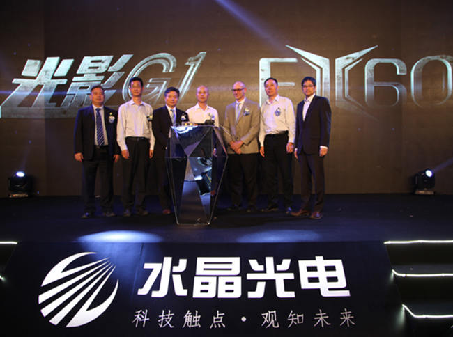 2016年10月13日下午,浙江水晶光电科技股份有限公司在杭州香格里拉大酒店召开新品发布会。在本次发布会上,推出了两款光学利器——EX60超短焦投影光学模组和“光影G1”巨幕观影光学模组。发布会现场,由水晶光电执行董事兼总经理范崇国先生作开题演讲后,无人机携着此次发布的两款黑科技产品闪亮登场,接着TI大中华区总经理WilliamBommersbach先生、安华总经理王凡博士和晶途光电总经理张文字博士,依次就DLP技术、微投发展历程与未来市场预期以及新型显示领域的发展方向作了精彩报告。